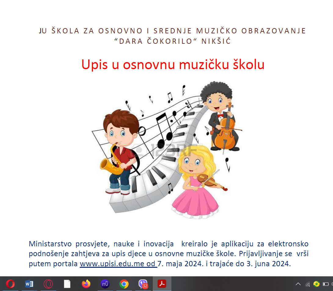 Upis u osnovnu muzičku Кретање чланка Naše jutro: prof. Milena Popović i učenica Una Pejović NAŠE JUTRO: Tijana Blečić Perović, Nikolina Orbović i Ana Janjić 12.05.2024.